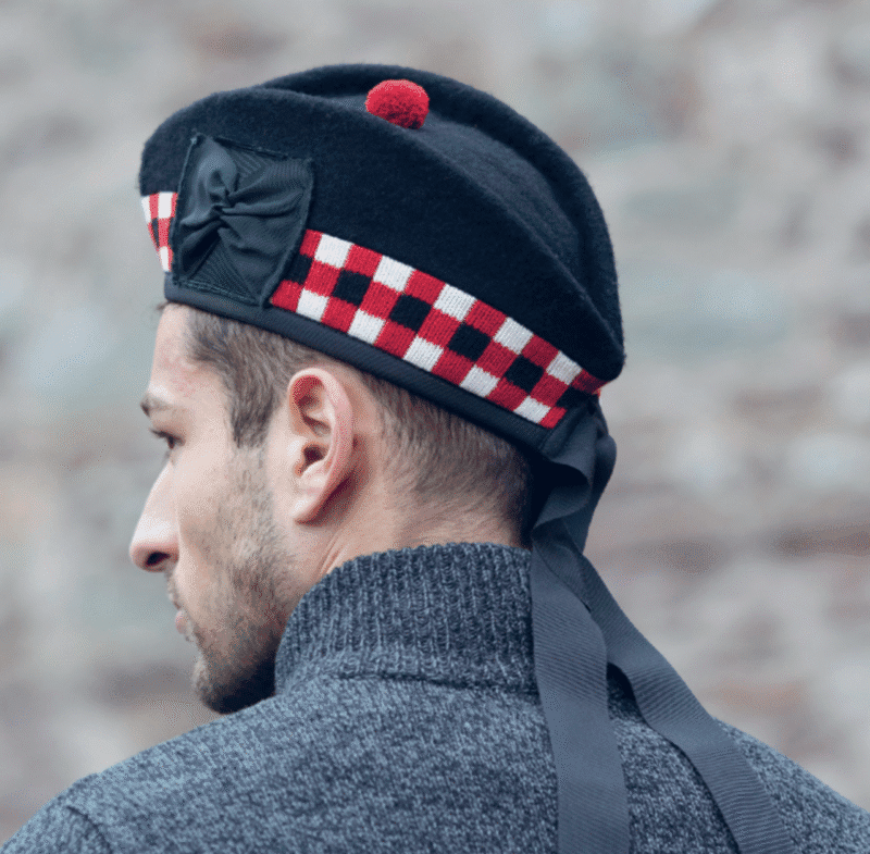 The Glengarry bonnet has a sharper silhouette. It folds flat, features straight lines, and traditionally includes a diced red-and-white band. It became widely associated with Highland regiments, where it helped distinguish units and express unity.