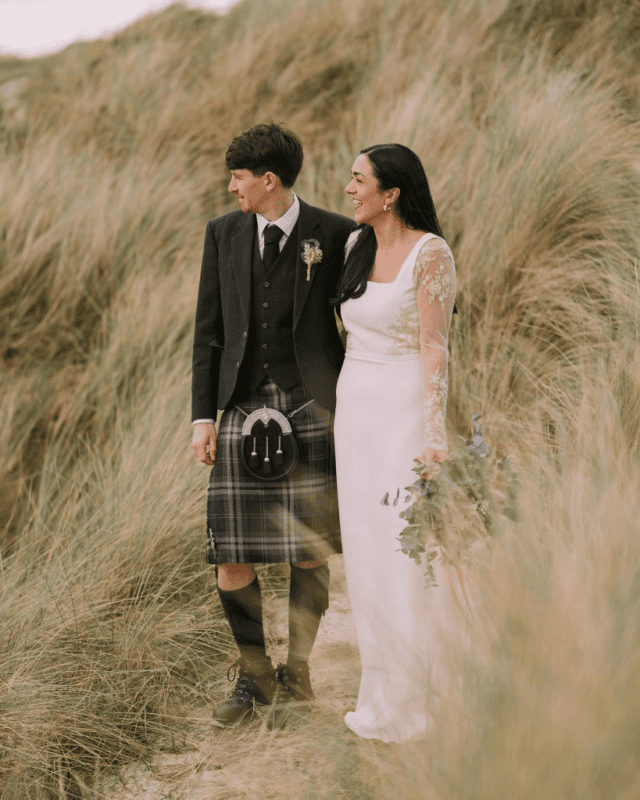 Green and blue work beautifully in Highland scenery. Deep red feels bold and celebratory. Some grooms choose a muted tartan to create an elegant, refined look. Our overview of how tartan prints developed helps explain why these choices carry meaning.