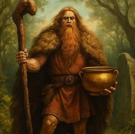The Dagda himself belongs to the Tuatha Dé Danann, a supernatural race who shaped early Irish mythic history. His cauldron expresses abundance, but also justice. He distributes food fairly. He embodies balance.