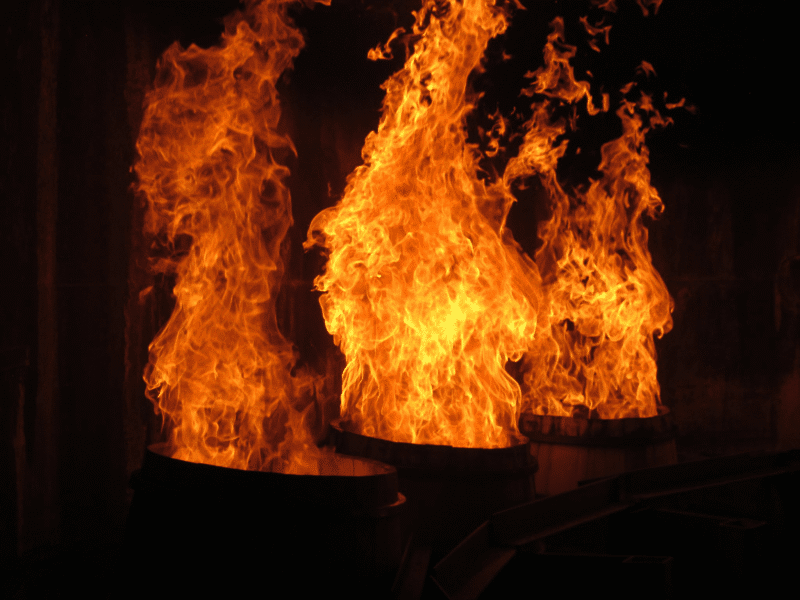 Charring is a short but powerful step. Flames roar inside the barrel for a few seconds to several minutes. This burns the inner layer and caramelizes the wood sugars. During aging, the whisky interacts with these sugars, taking on notes of vanilla, smoke, honey, spice, or caramel depending on the distillery’s choice.